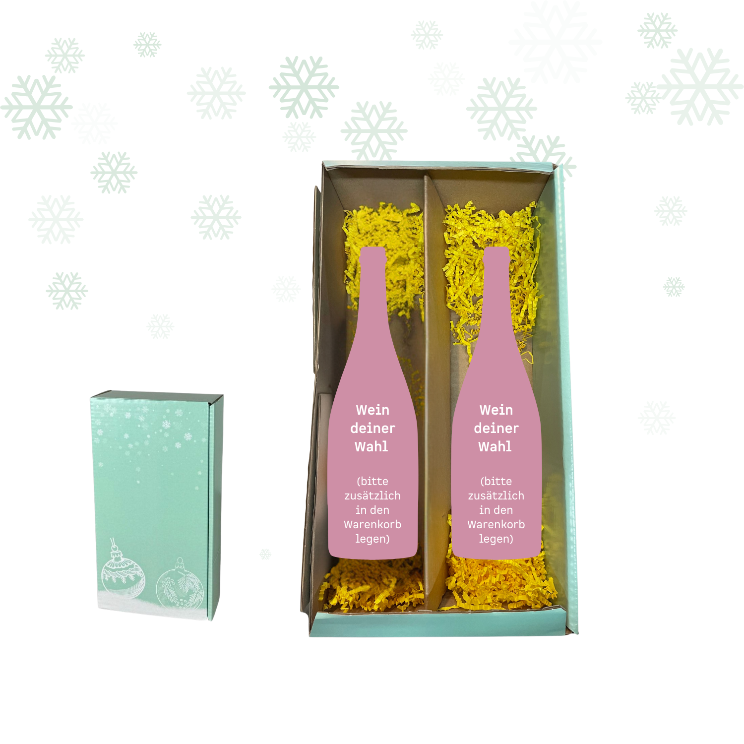 Verschenke zu Weihnachten etwas Individuelles: Mit diesem festlichen 2er-Präsentkarton stellst du dein persönliches Weinpräsent zusammen. Lege einfach die gewünschten Weine separat in den Warenkorb – wir verpacken sie stilvoll in der Weihnachtsbox.
